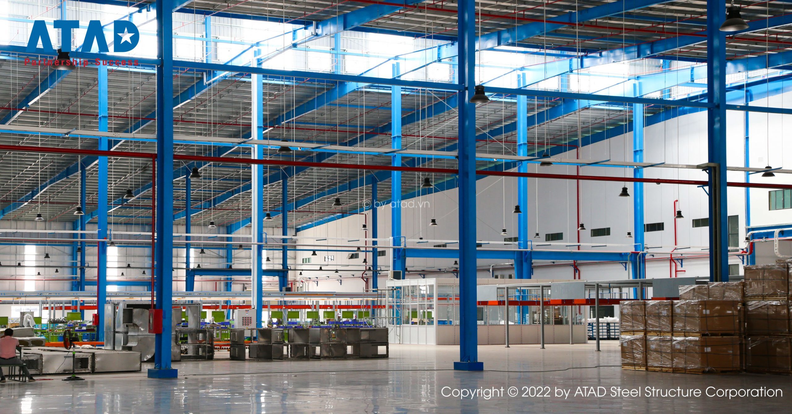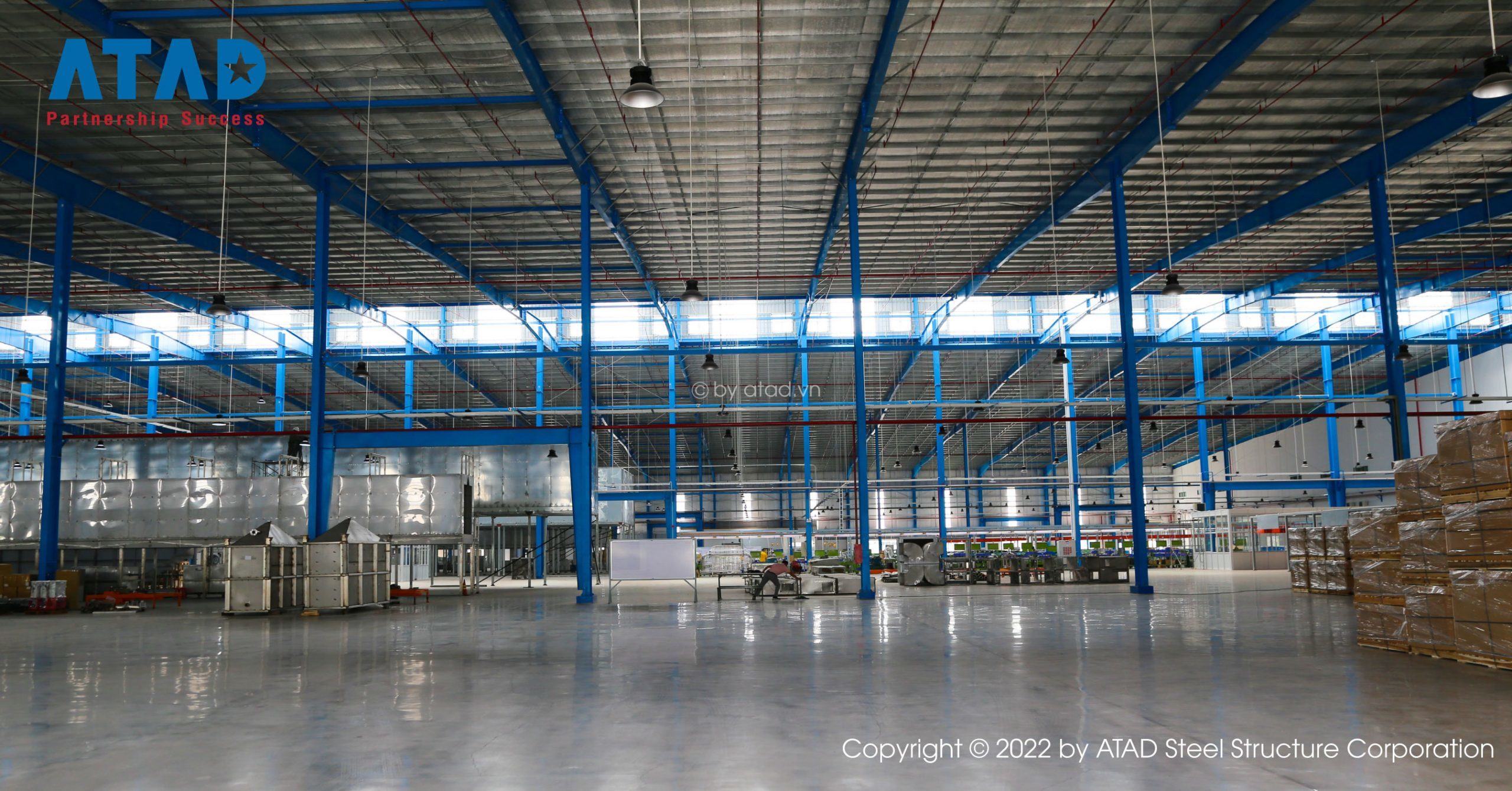 Die Stahlbearbeitungshalle in dem Projekt ist ein Stahlgebäude, das von GST gebaut wurde. Die Stahlkonstruktionswerkstatt ist vollständig geschlossen, und die Produktion wird nicht durch das Wetter beeinträchtigt.