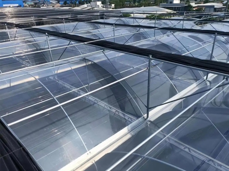 Das Dach verteilt das Licht gleichmäßig über den Raum. Die Hauptstahlkonstruktion verwendet ein warmgewalztes Rohr, das mit einer hohen Belastbarkeit ausgestattet ist.die bequem und schnell zu installieren istDas Gewächshaus ist mit Sonnenschirm, Lüfter, nassen Vorhang, starkem Kühlsystem, Anti-Kondensationssystem, Oberlichterventilationssystem, Heizungssystem, intelligenten Steuerungssystem ausgestattet.mobile Pflanzenbeet, Wasser- und Düngemittelsystem, automatisches Sprinklersystem, Stromverteilungssystem usw.